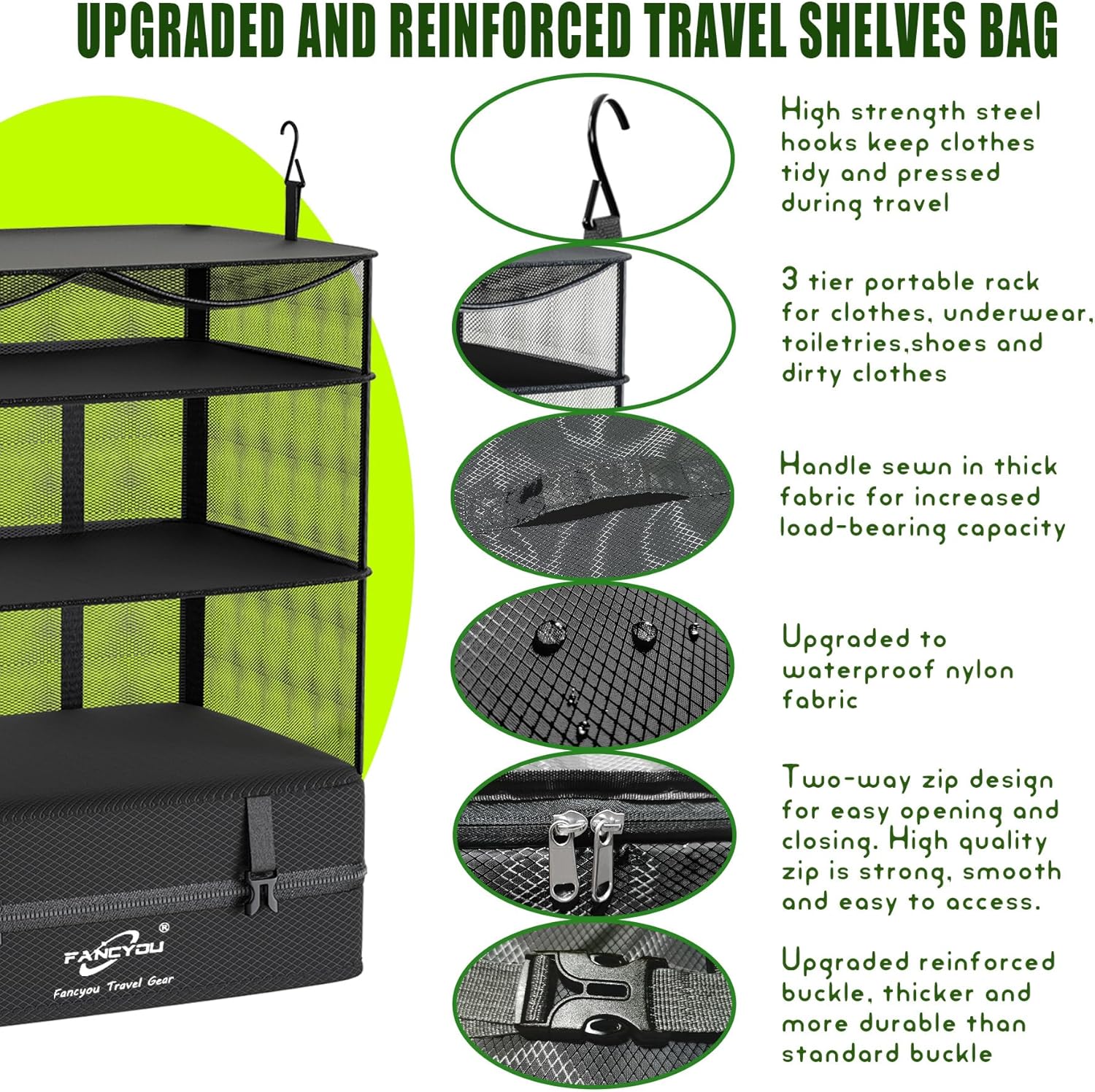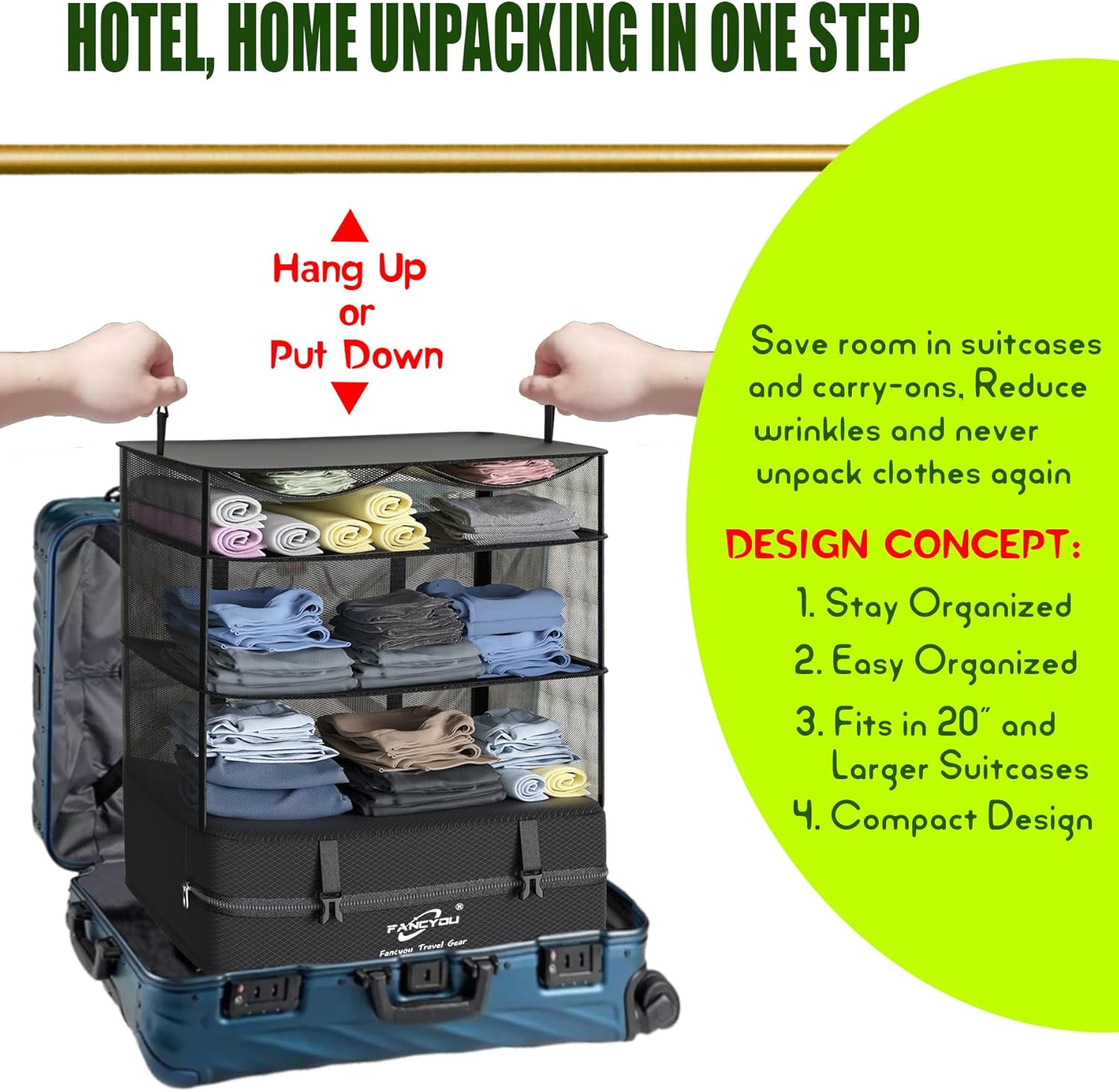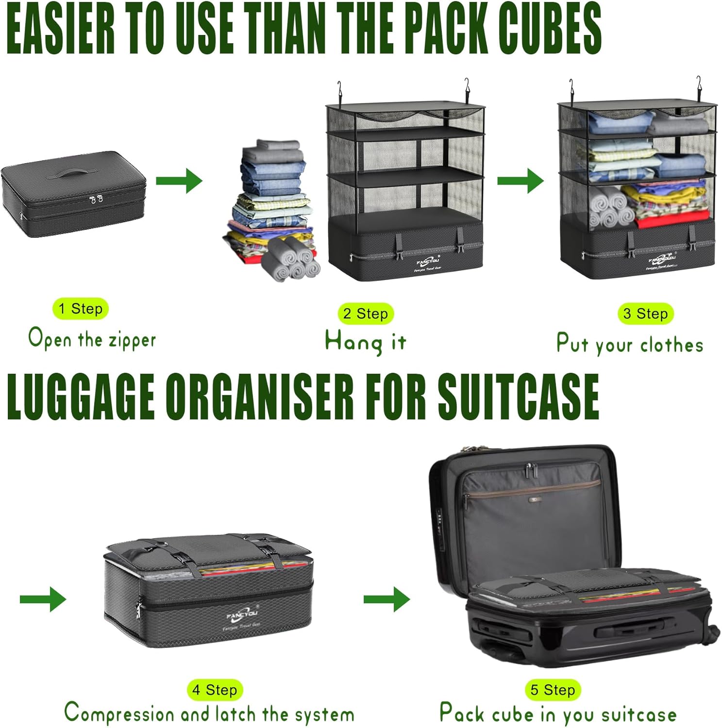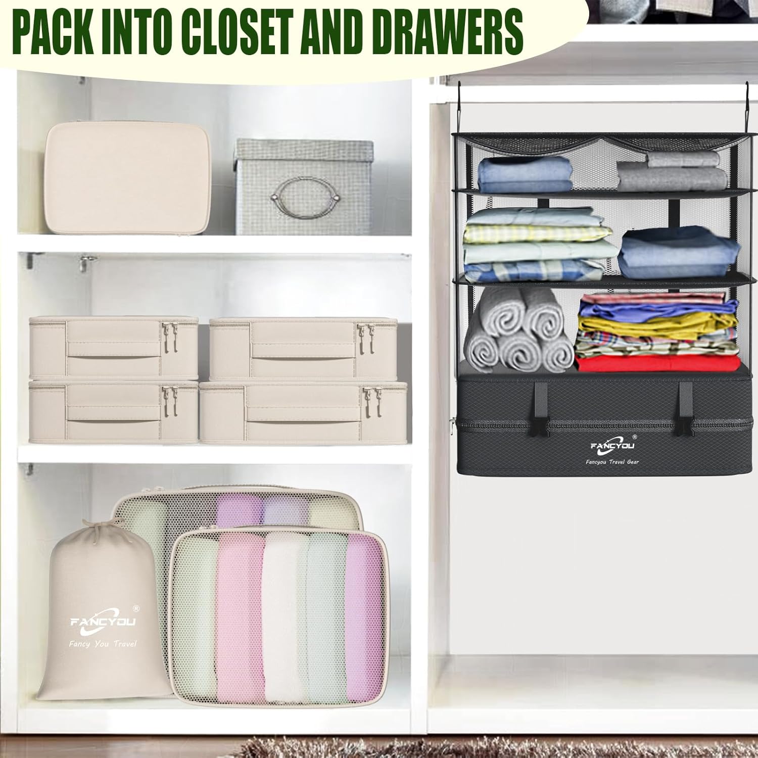 Whether you’re a frequent traveler or preparing for a weekend getaway, these packing cubes are a must-have accessory to keep your belongings neat and tidy while on the go. Say goodbye to messy suitcases and hello to effortless organization with the Compressible Packing Cubes Portable Hanging Closet Shelves. Order yours today and travel smarter!